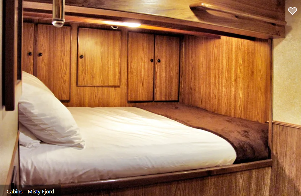 You’ll stay in a private cabin aboard the M.V. Misty Fjord.